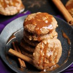 These Vegan Gluten-free Cinnamon Spice Oatmeal Cookies with Caramel Glaze are perfectly spiced, easy to make, oil-free and made with oats and just 8 ingredients.