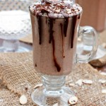 Delicious Vegan Almond Joy Milkshake with a boost of espresso powder for the ultimate indulgent milkshake! Made with almond butter, coconut butter and the perfect thick frosty texture!