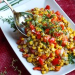 Add the garlic, corn, coconut milk and fresh thyme. Keep it at medium heat and cook about 10 minutes more or until it has thickened up from the milk. You want it thickened and no more liquid remaining. Taste and add anymore spice if desired depending on how spicy you want it.