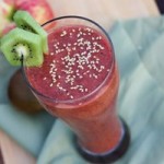 A smoothie that is incredibly high in vitamins, antioxidants and nutrients. This smoothie has the power of Vitamins A, C and K and a good dose of calcium and healthy fats from the chia seeds and sesame seeds. The smoothie reminds me of a fruity jolly rancher, but the benefits of superfood!