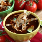 This vegan tortilla soup has a strong tomato-chile broth that is balanced out with the sweetness of the red onion and the sweet corn. Topped off with crisp tortilla strips and creamy avocado chunks makes it one satisfying, hearty tortilla soup!